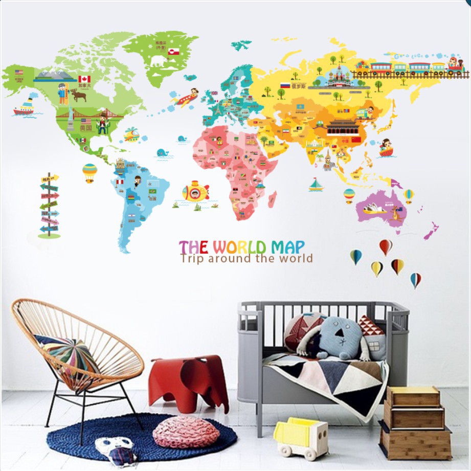 Bilik Kanak Kanak Dunia Peta Ruang Tamu Tadika Hiasan Dinding Pelekat Shopee Indonesia