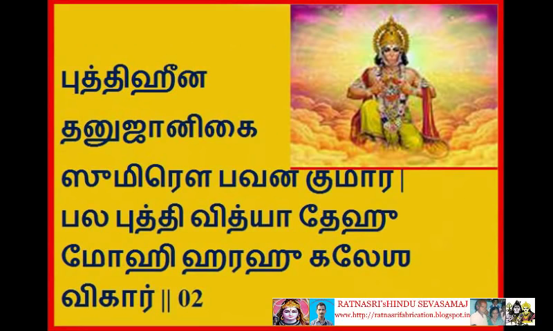 Ratnasri Shindu Sevasamaj Hanuman Chalisa Tamil Lyrics With Mp3 Easy Learn