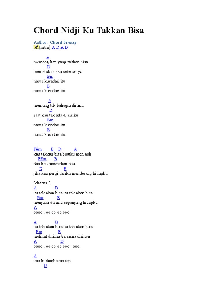 Chord Nidji Ku Takkan Bisa