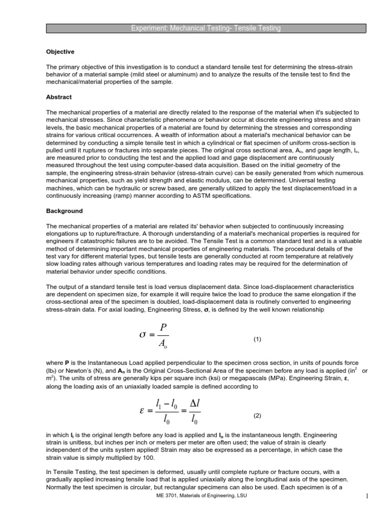 Tensile Test Lab Report Material Science For Engineers Studocu