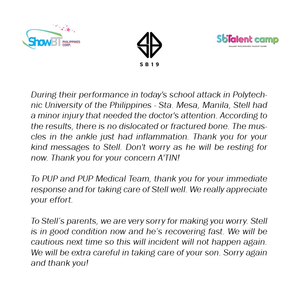 Sb19 Official On Twitter Notice Stell S Injury Thank You For Your Kind Messages To Stell Don T Worry As He Will Be Resting For Now According To The Doctor There Is No