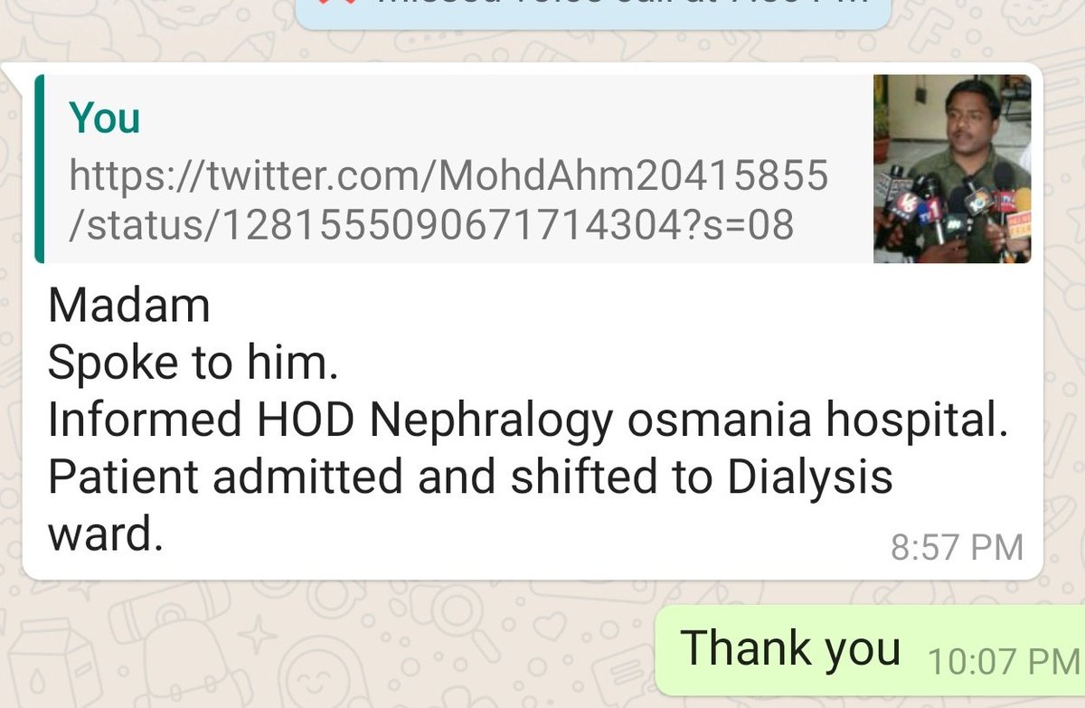 Dr Tamilisai Soundararajan On Twitter Thank You Hod Nephrology And Superintendent Osmonia Hospital For Your Prompt Response For My Request Which I Received Thr Twitter Https T Co Fg7nqyys8p Https T Co Ya6vjupifr