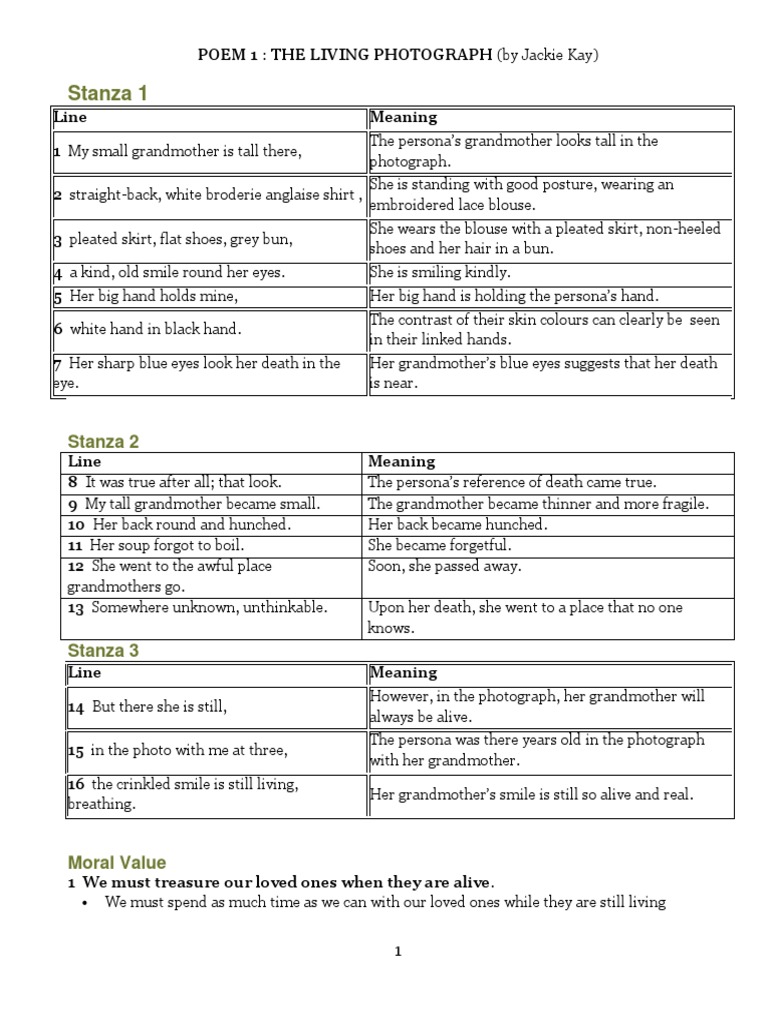 Living Photograph By Jackie Kay Notes Pages 1 2 Text Version Anyflip