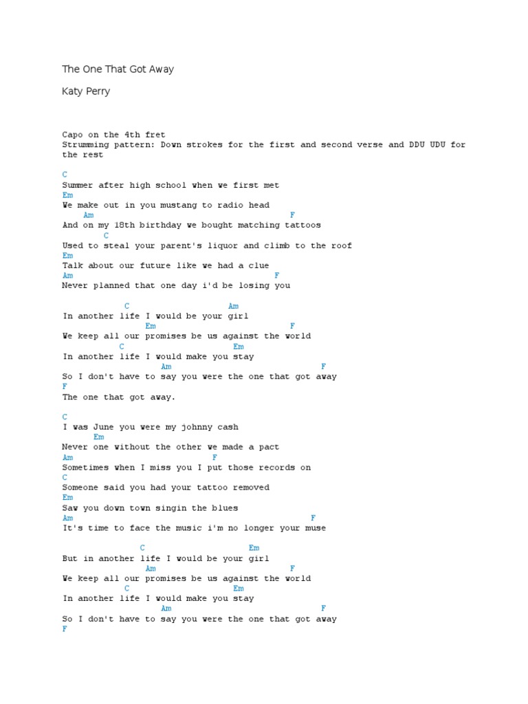 Chord The One That Got Away Katy Perry Tab Song Lyric Sheet Guitar Ukulele Chords Vip