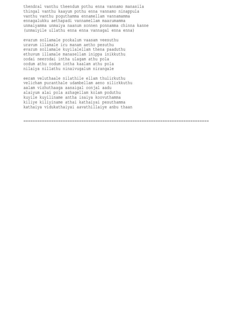 Thendral Vanthu Theendum Pothu Song Lyrics In Tamil