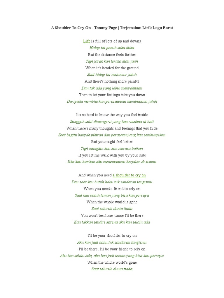 Lirik Lagu Tommy Page A Shoulder To Cry On Dan Terjemahan Pancaswara Lyrics
