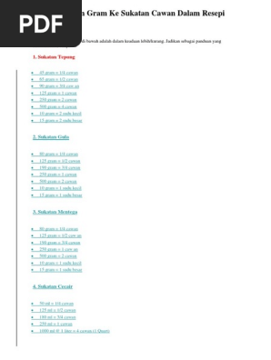 Tukar sukatan cawan ke gram. Mudah bagi kita untuk mengikut resepi yang disediakan. Tukar sukatan gram ke sukatan cawan ketika membuat kuih atau masakan. Tukar sukatan gram ke sukatan cawan ketika membuat kuih atau masakan. Jadi untuk memudahkan boleh rujuk perkongsian yatie zelani bagaimana nak tukar sukatan gram ml atau oz kepada sukatan cawan.