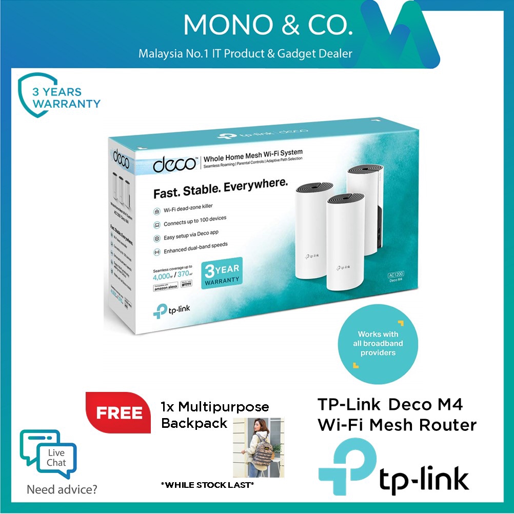 Tp Link Mesh Wifi Deco M4 Ac1200 Gigabit Mesh Router Support Unifi Mesh Maxis Time Free Multipurpose Backpack Shopee Malaysia