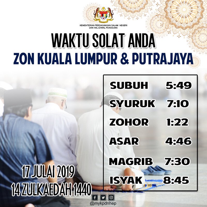 Mykpdnhep On Twitter Info Waktu Solat Bagi W P Putrajaya Kuala Lumpur Dan Kawasan Kawasan Yg Sewaktu Dengannya Pada 17 Julai 2019 Rabu Kpdnhep Waktusolat Https T Co Ypjgftg9gd