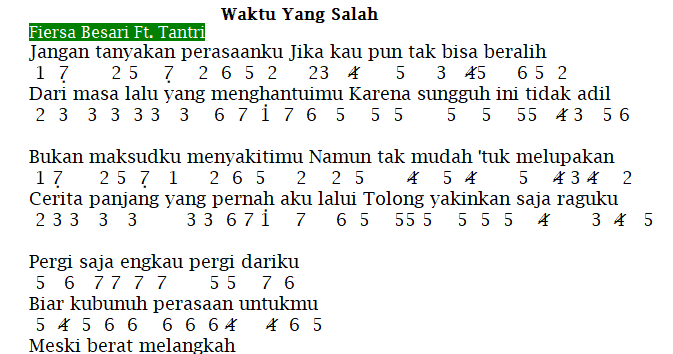 Not Angka Pianika Waktu Yang Salah Fiersa Besari Ft Tantri Not Musik Teks Lucu Lirik Lagu
