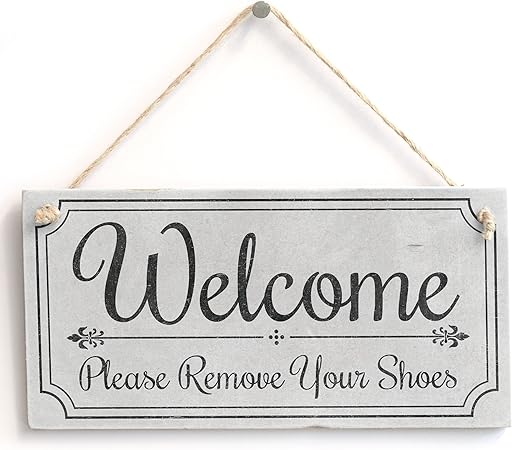 Amazon Com Welcome Please Remove Your Shoes Lovely Vintage Style Handmade Sign Take Off Shoes Plaque Wooden Hanging Sign 8 X 12 Home Kitchen
