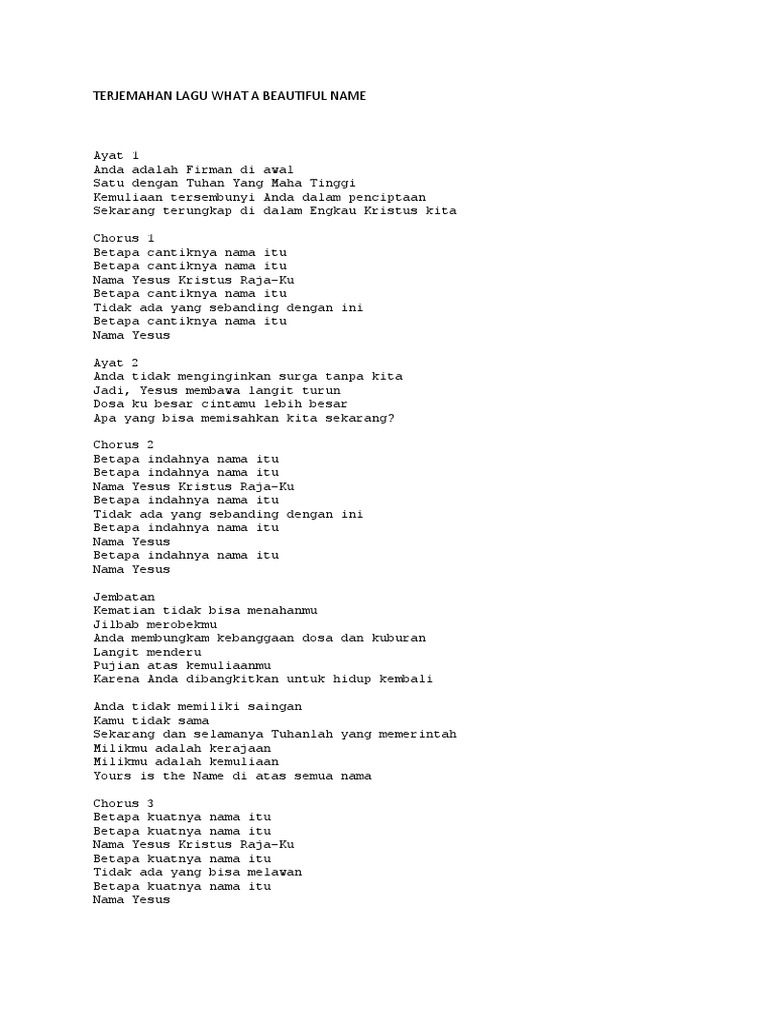 Terjemahan Lagu What A Beautiful Name Docx