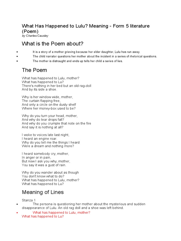 Poem Spm What Has Happened To Lulu Text Pdf Jpeg Ora Yusuf Xandria