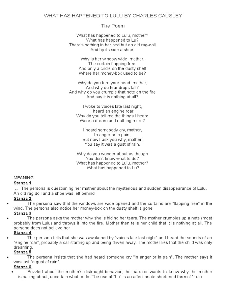 Litscope What Has Happened To Lulu By Charles Causley Guide My Essay M Sia