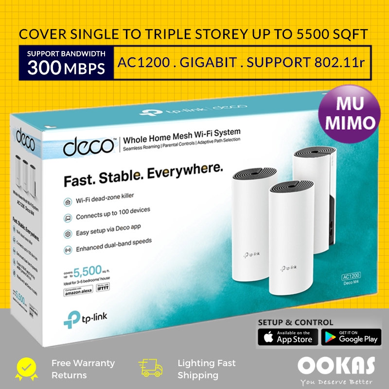 Tp Link Deco M4 Ac1200 Gigabit Mesh Wifi Router System Support Unifi Turbo Maxis Fibre Maxis Fiber Shopee Malaysia