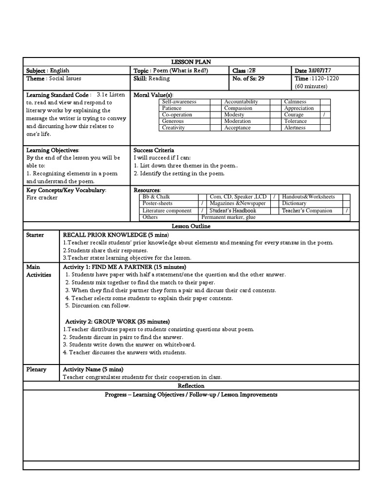 Doc Lesson Plan What Is Red E Julan Academia Edu