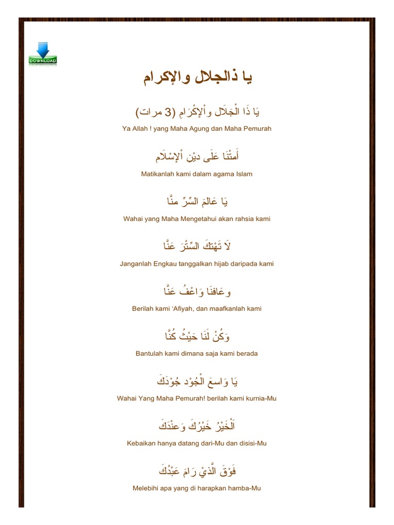 Ya Dzal Jalali Wal Ikram Lirik Teks Arab Latin Dan Artinya