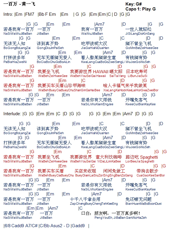 Yi Bai Wan Ge Ke Neng Sejuta Kemungkinan Chords Chordify