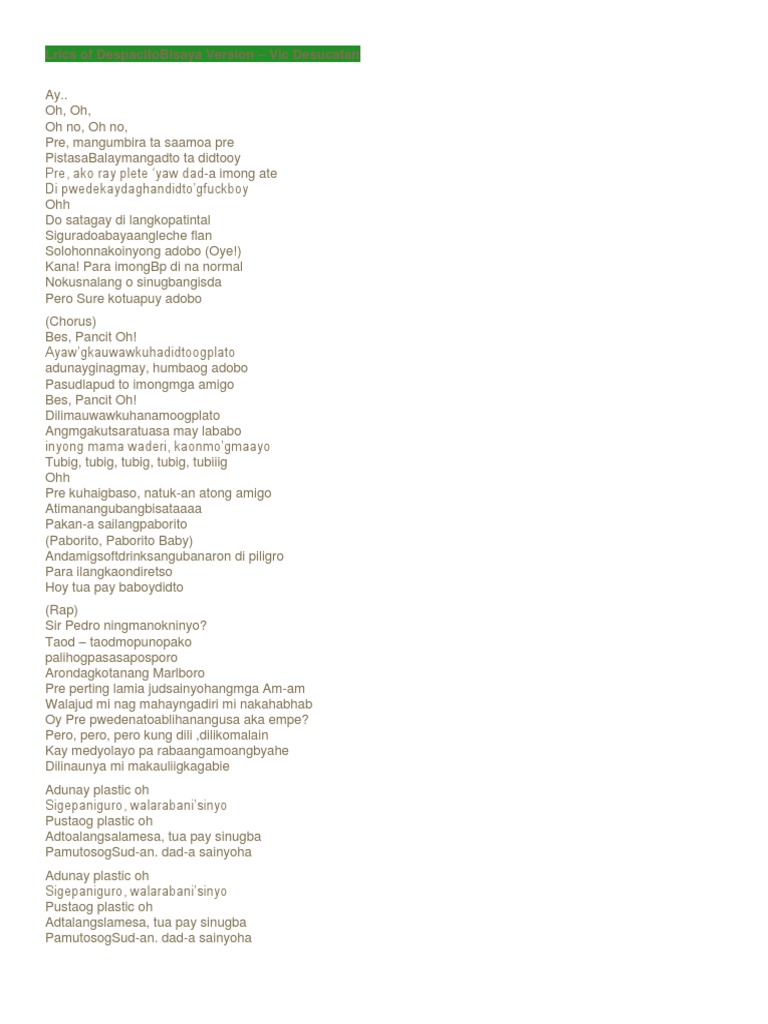 Lyrics Of Despacito Bisaya Version