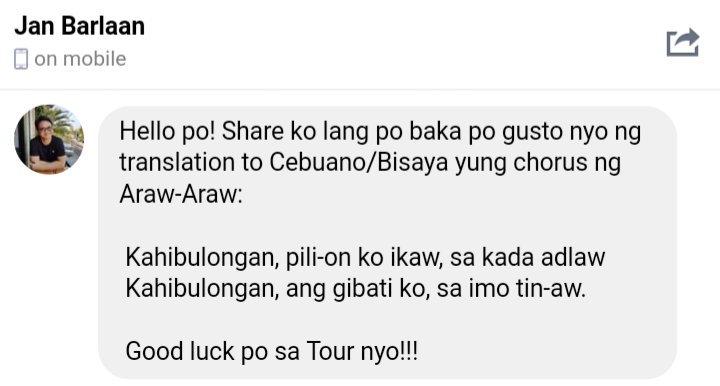 Miguel Benjamin On Twitter We D Like To Give All Credits To Jan Barlaan Who Provided Us With The Translation For The Chorus Of Araw Araw In Bisaya We Sang This Version Of The