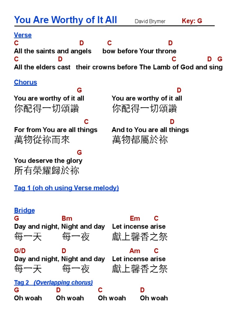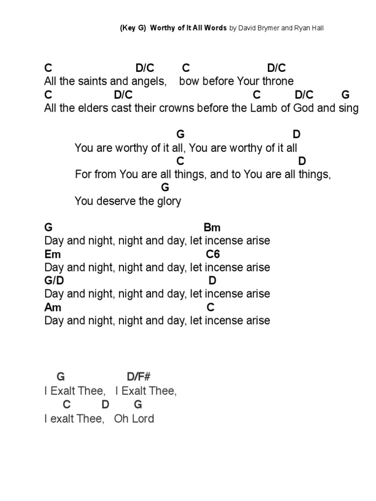 Worthy Of It All Chord Chart Editable Onething Live David Brymer Praisecharts