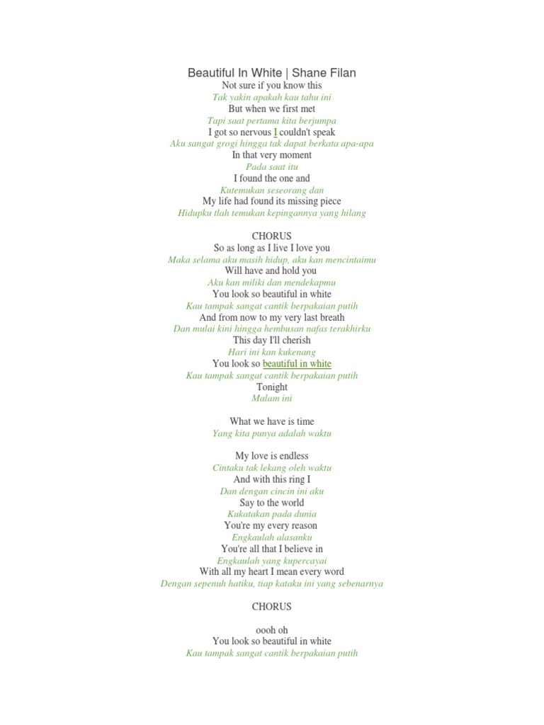 Nih Arti Lagu Beautiful In White Yang Cocok Banget Untuk Wedding Kaskus