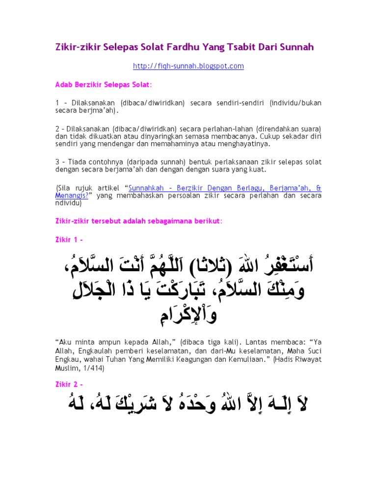 Pdf Zikir Zikir Selepas Solat Fardhu Yang Tsabit Dari Sunnah Hilman Boss Academia Edu